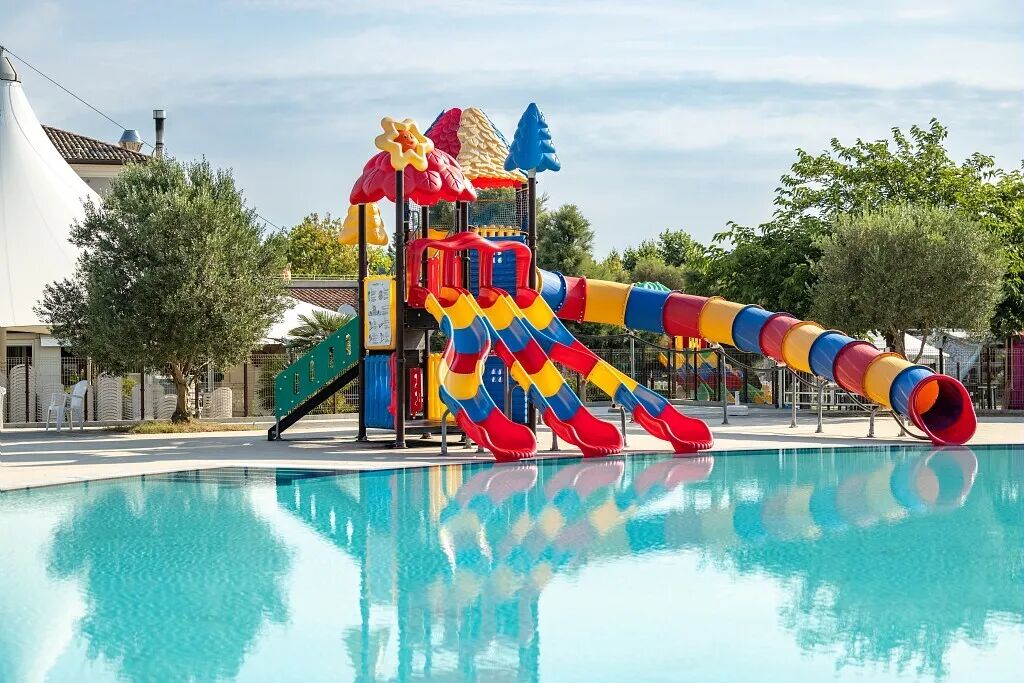 Auf diesem tollen Campingplatz in Vigna sul Mar dreht sich alles um unbeschwerten Wasserspaß. Nicht weniger als drei Swimmingpools stehen für Abkühlung und Entspannung zur Verfügung. Es gibt ein großes Becken, in dem Sie ein paar Bahnen schwimmen oder an der Wassergymnastik teilnehmen können, ein Entspannungsbecken mit Hydromassage, um sich zu entspannen, und natürlich ein Spaßbecken für Kinder! Die Kinder werden von den bunten Rutschen und Wasserspielen begeistert sein. Aber das größte Plus ist die Lage: Der Campingplatz Vigna sul Mar hat einen direkten Zugang zu einem feinen Sandstrand an der Adriaküste mit einem exklusiven Privatbereich. Das Meerwasser fließt hier allmählich ab, so dass es für kleine Kinder, die gerne in der Brandung spielen, sehr sicher ist.