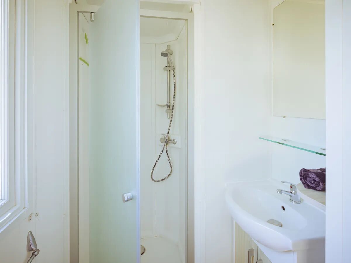 Dieses luxuriöse Mobilheim verfügt über 3 Schlafzimmer für maximalen Schlafkomfort! Das Hauptschlafzimmer hat ein großes Doppelbett. Das zweite Schlafzimmer hat 2 Einzelbetten. Eines der Betten kann unter das andere geschoben werden, so dass Sie in diesem Zimmer genügend Platz haben, um u.a. ein Babybett aufzustellen. Im dritten Schlafzimmer finden Sie entweder 2 Einzelbetten oder ein Etagenbett. Ein Lattenrost ist standardmäßig vorhanden, den Sie unter die Matratze schieben können, um zu verhindern, dass Ihr Kleinkind aus dem Bett rollt.